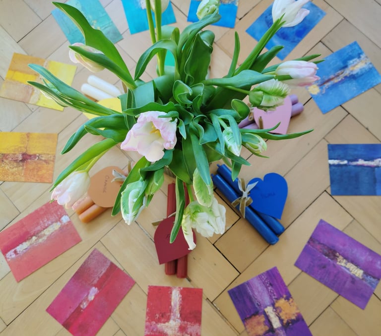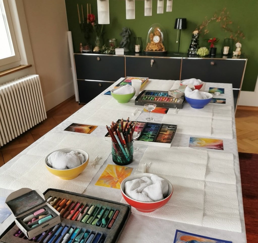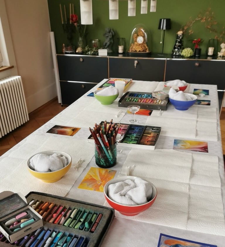 Mein Malatelier ist ein Ort, an dem Gedanken leiser werden und Farben lebendiger. Hier wird Kreativität nicht gefordert sondern sanft hervorgelockt. Es geht nicht um Leistung, sondern um die Begegnung mit dir selbst. Farben werden zu Brücken zwischen Innen und Aussen, und jedes Bild erzählt eine Geschichte, die tiefer reicht als Worte.