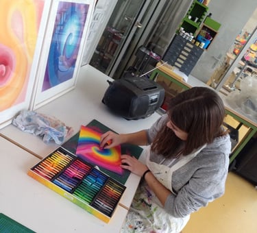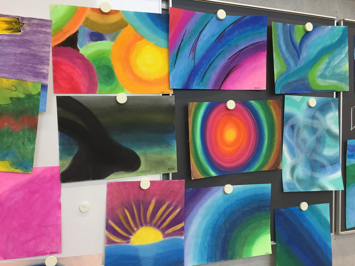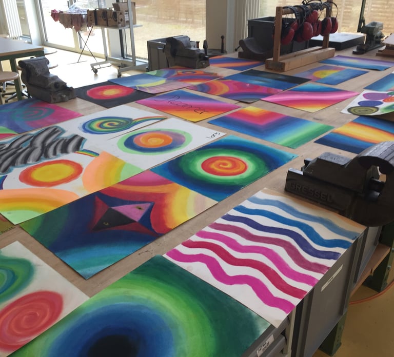 Mit grosser Freude durfte ich im Unterricht für Bildnerisches Gestalten an der Oberstufe in Bellach in 5 Klassen Workshops mit Jugendlichen durchführen. Nach Einführung in das Material und die Technik des Pastellkreidenmalens konnten die Jugendlichen ihrer Kreativität freien Lauf lassen. Mit Begeisterung und Freude entstanden tolle Kunstwerke, die in ihrer Farbigkeit und Experimentierfreudigkeit kaum zu überbieten sind.