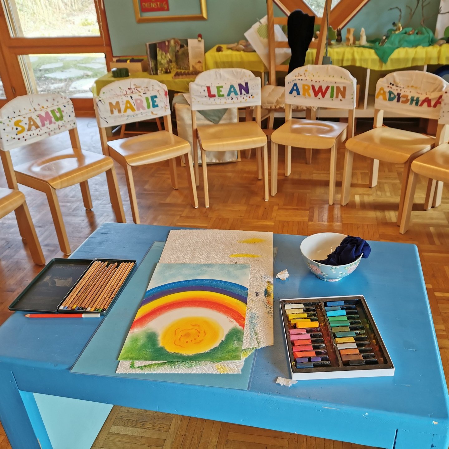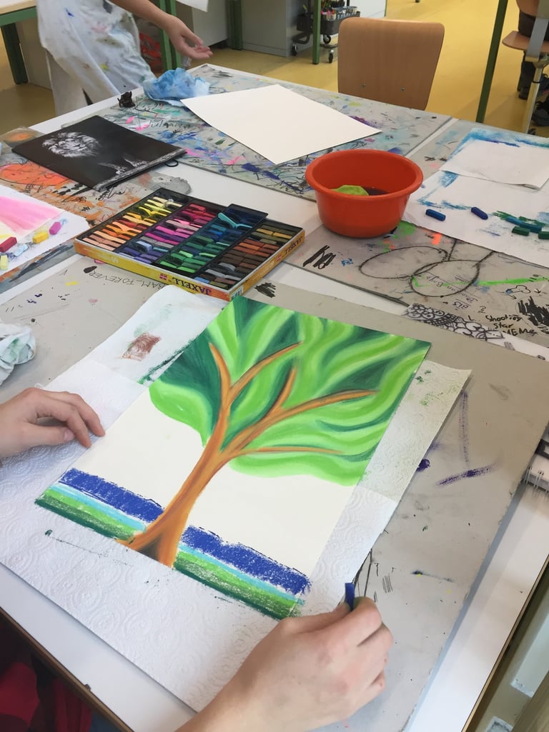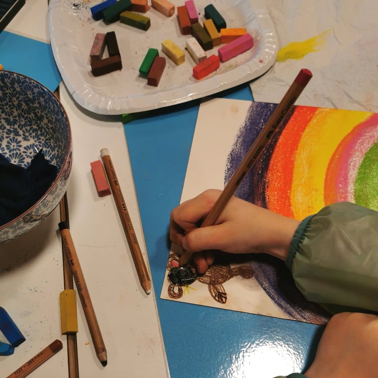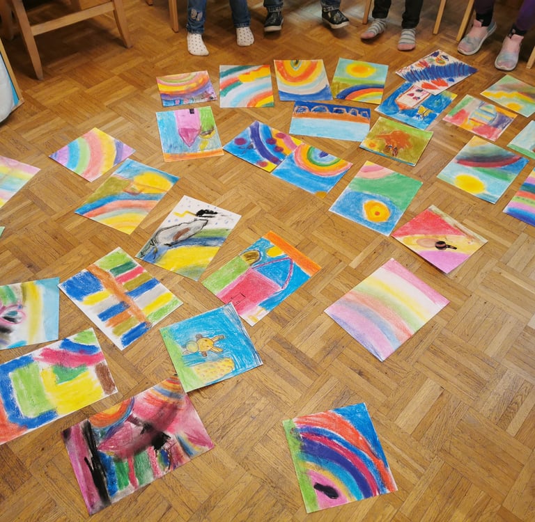 Die freudigen Kinder liessen sich von den bunten Farben inspirieren und schufen einzigartige Kunstwerke. Mit strahlenden Gesichtern experimentierten die Kinder mit den Pastellkreiden. Am Ende des Workshops waren alle stolz auf ihre Werke und konnten es kaum erwarten, ihre Eltern damit zu überraschen.